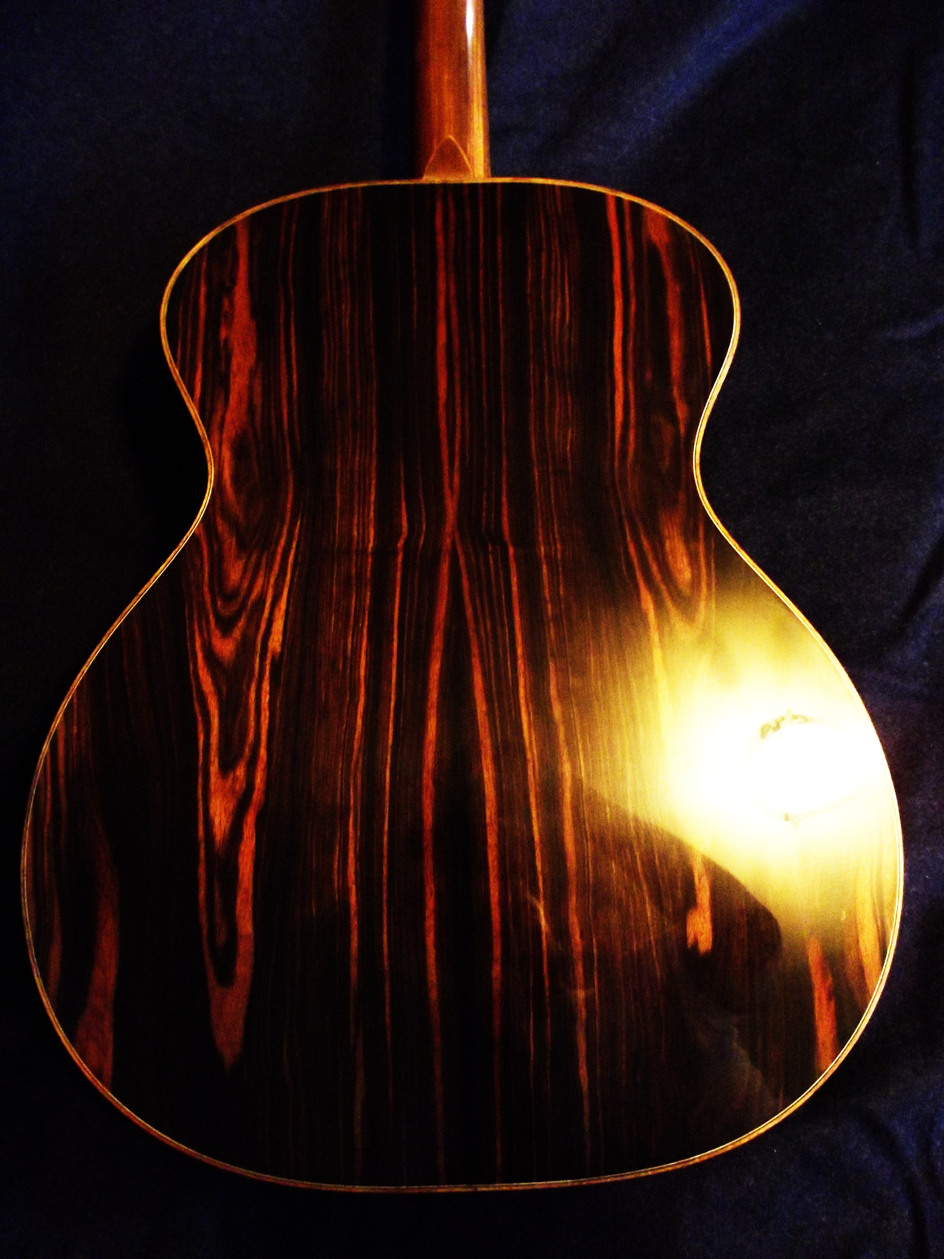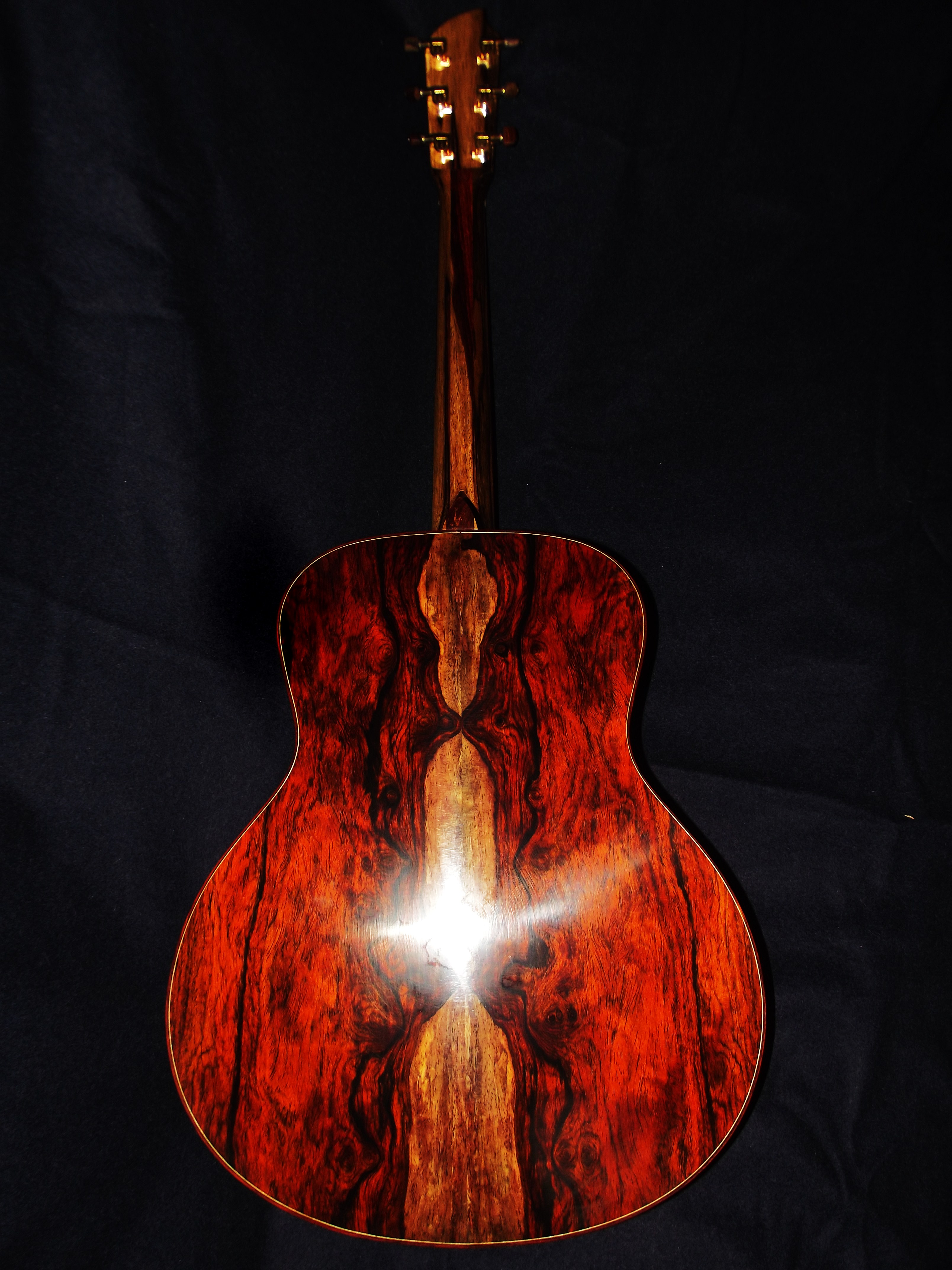I like to think of myself as a unique kind of guitar maker... While many luthiers build between 15-20 guitars per year, I only buildĀ 10-12 per year. This gives me the ability give each guitar my thought and focus on it's own unique characteristics. As each peice of wood has it's own personality, it requires a thoughtful approach to bring out it's own optimum voice. Even among wood of the same species there are so many variables of growing conditions, grain orientation, stiffness, taptone, etc.. that each individual peice of wood is different. Most luthiers adhere to a "standard" in their designs when it comes to wood thicknesses, bracing patterns, etc.. I take a different approach, by taking the characteristics of each peice of tonewood into consideration, I thickness and brace each guitar accordingly. This means that no two guitars are made the same, each one is one of a kind. Also, as of now I only build two models of guitars, my "Auditorium", and "Symphony". The reason for this is that I feel it is better to "stick to what you know best". I have built many other models in the past, but these are my favorites. Other than being a guitar maker, I also am a premier supplier of tonewoods. My company stocks over 30 different species from all over the world. This gives me access to the best of the best tonewoods available. Out of thousands of sets, I pick out the most beautiful, special sets for my guitars. If you want a guitar of unsurpassed beauty, craftsmanship, sound, and playability, look no further.